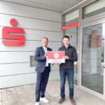 Bericht ud Foto: Sparkasse Rosenheim-Bad Aibling – Von links: Der Individualkundenbetreuer Klaus Breu mit dem glücklichen Gewinner Peter Bauer.