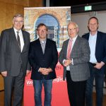 Peter Miesbeck und der Geschäftsführer der Veranstaltungs + Kongress GmbH Rosenheim Peter Lutz bedankten sich mit einem Präsent bei Heinz-Werner Bleyl für die Gründung des Freundeskreises und das langjährige Engagement als Vorsitzender und bei der gesamten Vorstandschaft.