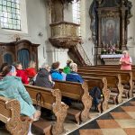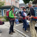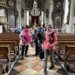 Das inzwischen 10. Pfingstpilgern des Pfarrverbandes Westliches Chiemseeufer hat mit ersten Gedanken, Gebeten und Liedern unter der Leitung von Pilgerwegsbegleiterin Monika Freund und mit Streckenführer Sepp Friedrich in der Pfarrkirche „Mariä Himmelfahrt“ in Prien begonnen. Heuer sind nur zwei ganze Wander- und Besinnungstage vorgesehen. Die erste Etappe nach einer Bahnanreise in den Rupertiwinkl, Ziel ist Bad Reichenhall-Ulrichshögel. Unsere Bilder entstanden beim Zusammentreffen vor der Kirche und bei der ersten Besinnung in der Priener Kirche.