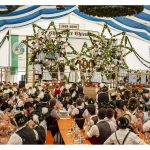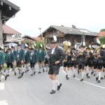 Bereits ab 8 Uhr morgens herrschte am Festsonntag im Chieminger Festzelt reger Betrieb. Der Empfang der zum Jubiläum angemeldeten Trachten- und Ortsvereine stand an. Hatte Petrus zunächst ein paarmal warnend den Zeigefinger erhoben, hatte er aber doch ein Einsehen mit den Festgästen und zog die grauen Wolkenbänder so weit auseinander, dass etliche Sonnenstrahlen durchkamen, die Temperaturen aber noch recht angenehm blieben.