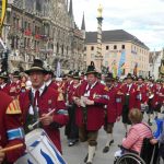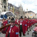 Zum festlichen Charakter bei der Feier “100 Jahre Patrona Bavariae” auf dem Münchner Marienplatz trugen auch die Mitglieder vom Bund der Bayerischen Gebirgsschützen bei. Deren traditionelle Marien-Verehrung kam dabei auf farbenfrohe und überzeugende Art zum Ausdruck.