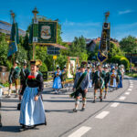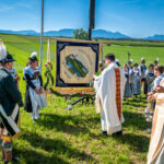 Höhepunkt des Jubiläums „100 Jahre Trachtenverein Bachecker Hirnsberg-Pietzing“ waren ein Sonntags-Gottesdienst auf freiem Felde, die dabei integrierte Weihe einer neuen Fahne sowie ein Festzug zur gemeinsamen Einkehr im Festzelt bei Moosen.