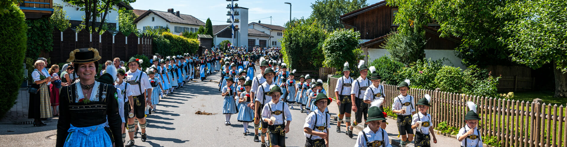 Höhepunkt des Jubiläums „100 Jahre Trachtenverein Bachecker Hirnsberg-Pietzing“ waren ein Sonntags-Gottesdienst auf freiem Felde, die dabei integrierte Weihe einer neuen Fahne sowie ein Festzug zur gemeinsamen Einkehr im Festzelt bei Moosen.