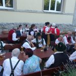 Unermüdlich wurde bis in die späten Abendstunden getanzt, sich unterhalten und Musik gespielt. Dass es mit der Zeit dunkel wurde, tat dem keinen Abbruch. Doch auch der schönste Abend mit Wiedersehens- und Lebensfreude musste auch einmal zu Ende gehen, um am nächsten Tag bei der Stadtrundfahrt mit dem City-Train oder bei dem Stadtrundgang mit Führung durch Dieter Müller, mit dabei sein zu können. Bevor es für die Kranzbergler und die Unterpfaffenhofener Blasmusik wieder nach Hause ging, trafen wir uns im Vereinsheim der Würzburger und wurden dort mit Weißwurst, Wiener und etlichen Kuchen verköstigt. Eine kleine musikalische Untermalung durfte natürlich nicht fehlen. Unser Jubiläum fand ein emotionales Ende mit der Bayernhymne, dem Frankenlied und dem Lied „Wahre Freundschaft“.