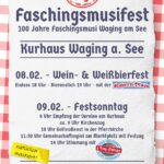 Eröffnet werden die Feierlichkeiten am Samstag, den 8. Februar mit einem “Wein- und Weißbierfest”. Hierbei wird die Stimmungsband “Ruperti-Blosn” mit Oberkrainer-Melodien, Partyknaller und Rock- und Pop-Hits der vergangenen Jahrzehnte für Stimmung sorgen. Der Festsonntag, am 9. Februar steht dann ganz im Zeichen des Jubiläums. Die Faschingsmusi Waging am See wird am Strandkurhaus ihre Gäste beim „Empfang der Vereine“ willkommen heißen. Der anschließende Kirchenzug führt dann in die Pfarrkirche St. Martin, in welcher der Festgottesdienst stattfindet. Im Anschluss gibt es dann das große Gemeinschaftgsspiel aller anwesenden Musikkapellen am Marktplatz, bevor der Festzug durch die Waginger Straßen führt. Am Kurhaus findet dann der zünftige Festausklang mit der Blaskapelle Jung-Otting statt. Als Schirmherr konnte Bürgermeister Matthias Baderhuber gewonnen werden.