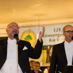 Ehrungen nahmen Benno Rummel, 1. Vorsitzender vom Innkreis Sängerbund und Alois Hundhammer, 1. Vorsitzender vom Sängerkreis Wendelstein vor, sie sagten: „Ein stattlicher Männerchor pflegt heute im Dienste einer echten Sängergemeinschaft die Chormusik, sei es das Volkslied sowie altes deutsches Liedgut. Damit hat sich der im weltlichen und kirchlichen Bereich, aber auch in der Zusammenarbeit im Sängerkreis mit großem Erfolg wirkende Jubelchor, um das Kulturleben von Kiefersfelden und darüber hinaus große Verdienste erworben“. Für besondere Verdienste gab es verschiedene Ehrungen, unter anderem für den 86jährigen Josef Meyer, der bereits 50 Jahre aktiver Sänger ist. Nach diesem ersten Teil des Festabends entrückten die Herren Wunderlich die Zuhörer in die zwanziger und dreissiger Jahre des vorigen Jahrhunderts. Mit meisterhafter Mimik und Gestik präsentierten sie u.a. Wochenend und Sonnenschein, Mein kleiner grüner Kaktus und meine Oma fährt Motorrad.