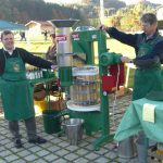 - Simon Mayer und Georg Riedl bei der Obstpresse