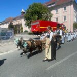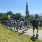 Die Priener Trachtler mit ihrer großen Schar an jungen und älteren Mitglieder, Blasmusikanten, Nachbars- und Gastvereine sowie Fahnenabordnungen und Festwägen prägten das Bild des feierlichen Festzuges bei hochsommerlichem Wetter.