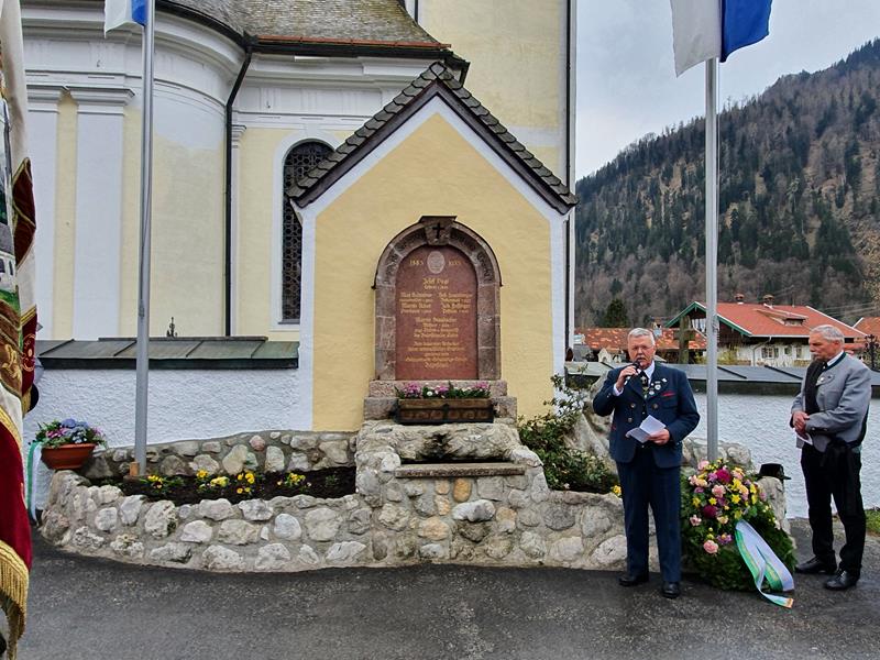 Beim anschließenden Festakt am Lehrer Vogl Denkmal legten der Trachtenverein Bayrischzell und der Bayerische Trachtenverband je ein Blumengebinde nieder. „Jugend, ehr der Alten Sitt und Tracht“, dieser oder ein ähnlicher Spruch von der Gedenktafel Josef Vogl‘s in Bayrischzell wird noch heute auf viele Fahnen der Trachtenvereine aufgestickt.