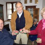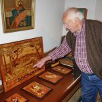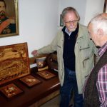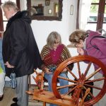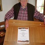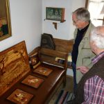 Im Mittelpunkt eines informativen und gemütlichen nachmittags stand bei diesem Besuch das Handwerk und ganz besondere Handwerksfähigkeiten von Leuten, die sich selbst zum Teil bereits zu den Senioren zählen und die ihre geschickt erstellten Sachen gerne interessierten Frauen und Männer zeigen. Waltraud Stöberl als eine der organisierenden Frauen freute sich über das rege Interesse an drei lebendigen Handwerksvorstellungen. Barbara Aufenanger zeigte an ihrem Spinnrad, wie richtiges Flachs- und Schafwoll-Spinnen geht. Helga Stampfl, die sich schon lange für das Fertigen von Wachsstöckeln zugunsten von sozialen Zwecken einsetzt, erläuterte dabei auch Details wie die Monstranz-Bohnen. In der guten Stube präsentiere Josef Henke gleich zwei Besonderheiten. Einmal eine Intarsienarbeit, für die er rund 500 Stunden Zeit aufwand, für die er 20 verschiedene Holzsorten in Originalfarben verwendete und für die er bei einem bundesweiten Wettbewerb vor fünf Jahren den ersten Platz erzielen konnte. Eine zweite Augenweide von Josef Henke waren Walnüsse, in deren Innern ganz feine Schnitzereien von einer ganz besonders ruhigen Bastelhand zeugten.