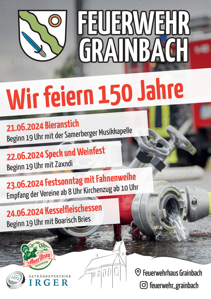 Ein Meilenstein steht bevor, wenn die Feuerwehr Grainbach auf dem Samerberg nächsten Monat ihr 150-jähriges Bestehen feiert. Seit einem Jahrhundert und einem halben Jahrhundert hat diese ehrwürdige Institution die Gemeinschaft geschützt, Heldenmut gezeigt und sich in die Herzen der Bewohner eingeschrieben.
