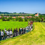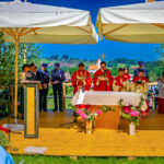 Festgottesdienst vor 10 Jahren, am 8. Juni 2014, beim 140-jährigen Jubiläum. Das Wetter bescherte einen wolkenfreien Himmel: Viele Besucher haben sich am Waldrand in den Schatten begeben, da es so heiß war.