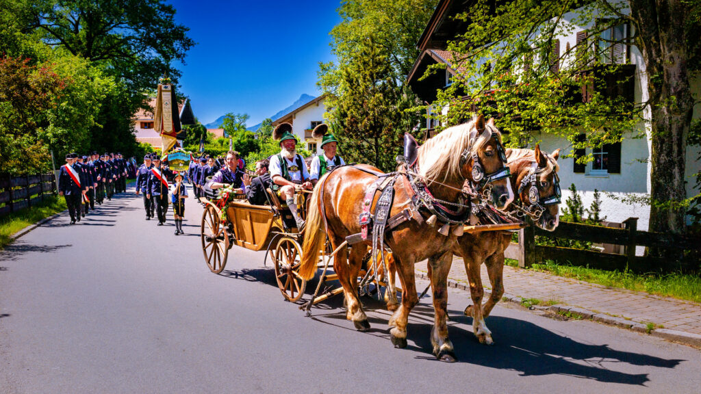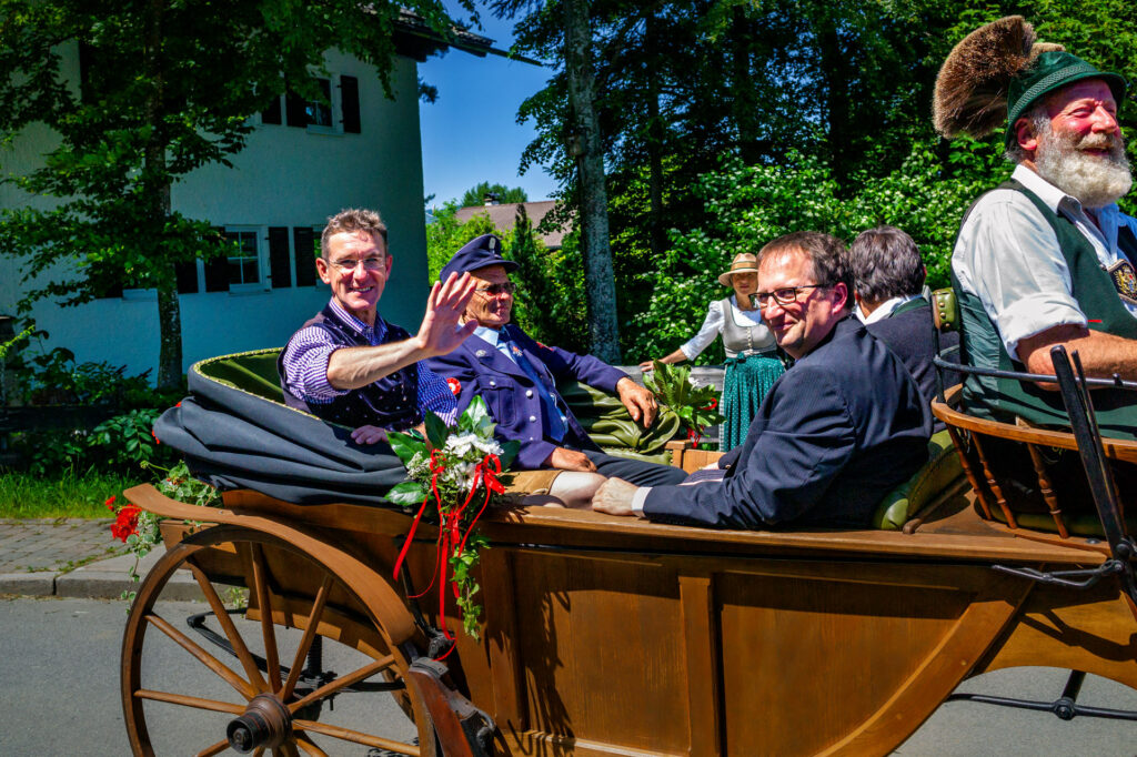 Vor genau 10 Jahren: Festzug der Feuerwehr Grainbach mit der Ehrenkutsche auf dem Weg ins Festzelt.