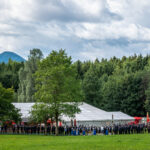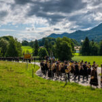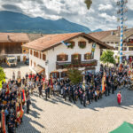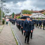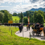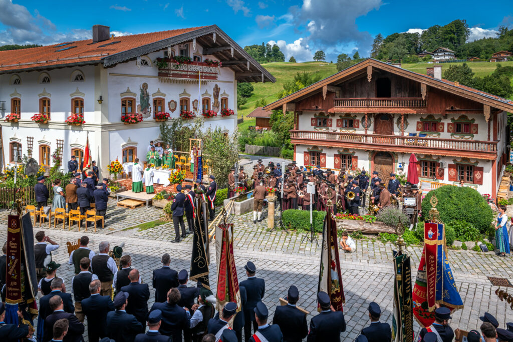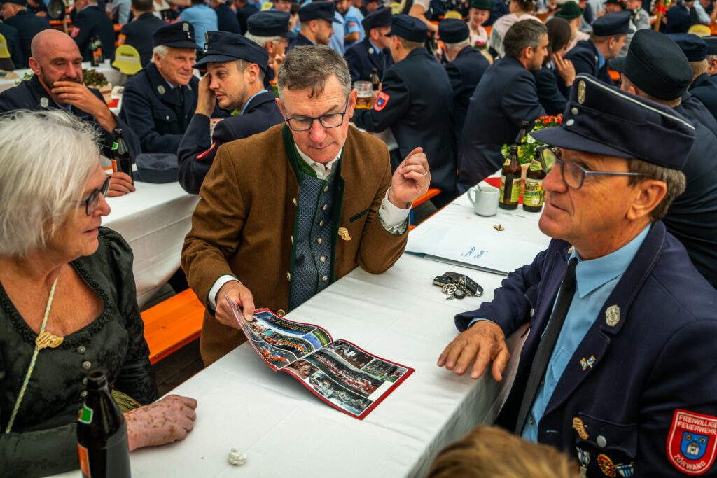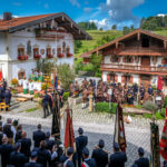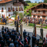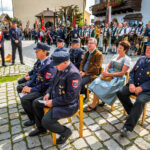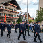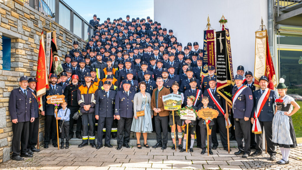 Alle Feuerwehrmänner und -frauen der Samerberger Feuerwehren (Törwang, Grainbach, Roßholzen und Steinkirchen) mit den 3 Bürgermeistern vom Samerberg (1. Bürgermeister Georg Huber, 2. Bürgermeister Christoph Heibler, 3. Bürgermeisterin Christine Eckert), sowie den Tafelträgern und Vereinsfahnen.
