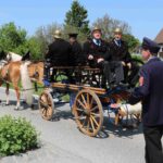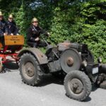 Einst das modernste Gerät auf dem Markt: Die Umrathshauser führten die alte Spritze – stilgerecht gezogen von einem deutlich jüngeren Bulldog – aus der Zeit vor dem Ersten Weltkrieg im Festzug mit.