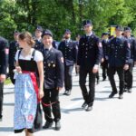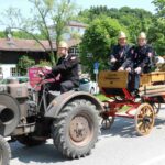 Der Festgottesdienst schloss mit der Bayernhymne und dann zog der Festzug durchs geschmückte Dorf. Mit dem Festverein an der Spitze ging es auf die Hauptstraße bis zum Rathaus, dem Bürgermeister und den Gemeinderäten folgten die Dorfvereine und die Feuerwehrvereine der Region. Die Umrathshauser und die Wildenwarter führten die alten Spritzen aus der Zeit vor dem Ersten Weltkrieg mit.