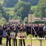 38 Fahnen der Feuerwehren aus der Region und der Ortsvereine standen rund um den Feldaltar auf der Südseite von Frasdorf, um den Festgottesdienst gemeinsam mit Pfarrer Overmeyer zu feiern. „Euer Motto ist keine leere Phrase, ihr erfüllt es seit 150 Jahren mit Leben und seid für eure Nächsten da, auch unter Einsatz des eigenen Lebens“. Musikalisch umrahmten die Musikkapelle Wildenwart unter der Stabführung von Wolfgang Kink und die Frasdorfer Singgemeinschaft unter der Leitung von Bernadette Osterhammer den Festgottesdienst mit der Ölbergmesse von Sebastian Weyerer.
