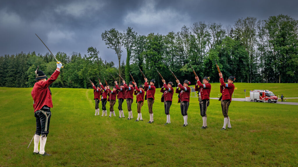 Ehrensalut der Gebirgsschützen-Kompanie Samerberg beim Festgottesdienst