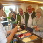 Der Versammlungsort in Rins wurde bewusst gewählt, weil die Bauersfamilie von Claudia und Klaus Gschwendtner mit ihren drei Kindern in mehrfacher Hinsicht mit der Direktvermarktung verbunden sind. Nach einem gemeinsamen Mittagessen (mit Rinderbraten und Rinser-Hof-Lasagne) stellte Klaus Gschwendtner sein zukunftsfähiges Hof-Konzept vor. Hierzu gehören die Landwirtschaft mit 120 Tieren und Milcherzeugung, dann das vor nunmehr 15 Jahren selbst kreierte Rinser-Natur-Eis (bis zu 150 Sorten nach eigenen Rezepten, erhältlich beim eigenen Kiosk am Rinser See, am Hof, in vielen Gastwirtschaften sowie bei Festzelten und Großveranstaltungen zwischen Berchtesgaden und München) und der neu erbaute Rinser See-Hof mit vier Fünf-Sterne-Ferienwohnungen und großem Aufenthaltsraum. In diesem konnte auch noch das Rinser-Natur-Eis probiert und genossen werden.