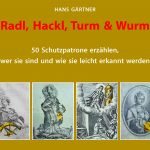 „Radl, Hackl, Turm & Wurm“ – mein Büchlein über 50 Schutzheilige entstand aus der Idee, eine Einführung in das Verständnis von Heiligen-Attributen wie Radl (Katharina), Hackl (Wolfgang), Turm (Barbara) und Wurm (Georg) zu geben. Das Büchlein passt gut zur endlich fertigen Renovierung der Katharinenkirche von Mühldorf a. Inn. Hier wurden meine Frau und ich getraut, nahebei arbeitete mein Schwiegervater als Anwalt, und die Tochter erhielt den Namen der Kirchenpatronin.