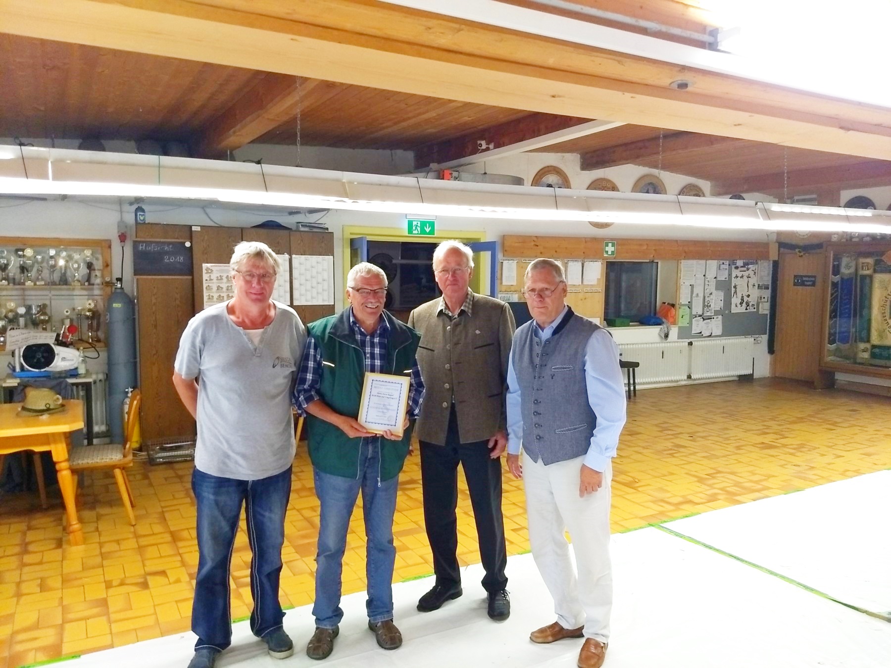 v. l. n. r.: Kreisbandsvorsitzender Thomas Hübner, Vereinsmitglied Anton Rappel, Vereinvorstand Leonhard Summerer und zweiter Priener Bürgermeister Hans-Jürgen Schuster