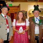 Die Ehrenscheibe (Glück) erhielt Theresa Steinbacher, Gebirgsschützenkompanie Inzell, mit dem besten Schuss auf die grüne Glückscheibe mit 9,8 Ringen. Bataillonskommandant Fritz Kelzenberg und Bataillons-Schützenmeister Ober-leutnant Sepp Kirner übereichten die gemalte Schützenscheibe und gratulierten.