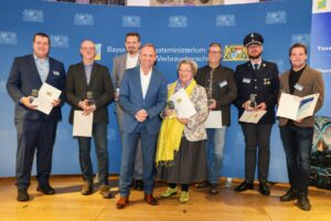 Umweltminister Thorsten Glauber überreicht den Tierschutzsonderpreis der Bayerischren Staatsregierung an sieben verschiedene Rehkitzrettungsorganisationen24.11.2025 / Schluss Thurn, Heroldsbach Foto: © Daniel Löb / Loeb für Bayerisches Staatsministerium für Umwelt und Verbraucherschutz