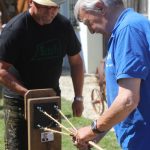 In der Schmiede wurde Feuer gemacht und die Eisenstäbe geformt, der Backofen für Schmalzgebackenes war in Betrieb und unter den weiß-blauen Sonnenschirmen versammelten sich im Innenhof hunderte von Besuchern um in geselliger Unterhaltung an den Biertischen. Dort wurden Errinnerungen wach, es gab viel zu erzählen, von der schlimmen Kriegszeit, wo es in der Landwirtschaft noch hart von früh bis spät nur mit der Hand gearbeitet werden musste bis hin zur heutigen schnelllebigen Landwirtschaft.
