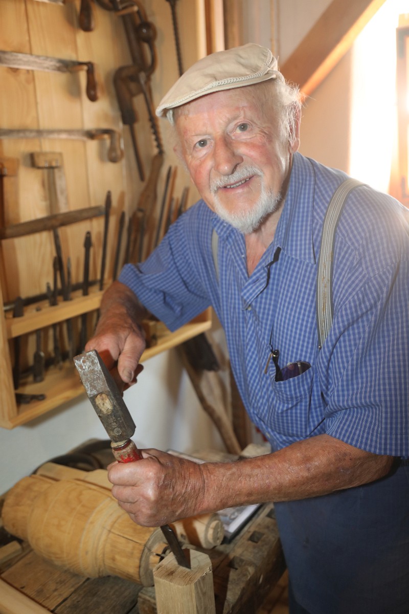 In der Schreiner- und Wagnerei-Werkstatt präsentierte der 86-jährige Alois Tremmel aus Wambach sein handwerkliches Können