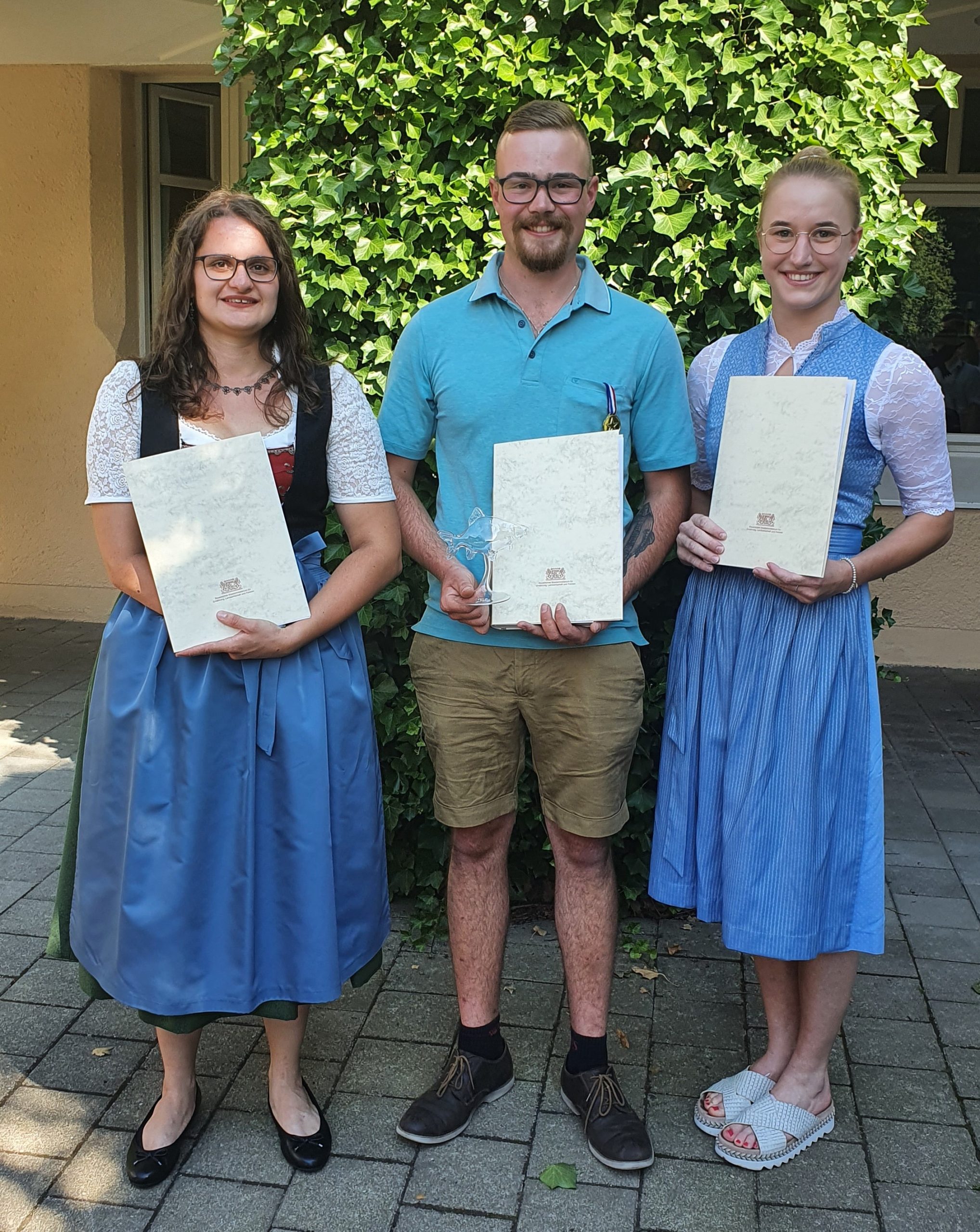 Die Jahrgangsbesten (v.l.n.r.): Amelie Graßl (2.), Peter Schaaf (1.) und Katharina Haunberger (3.). (LfL / Institut für Fischerei)