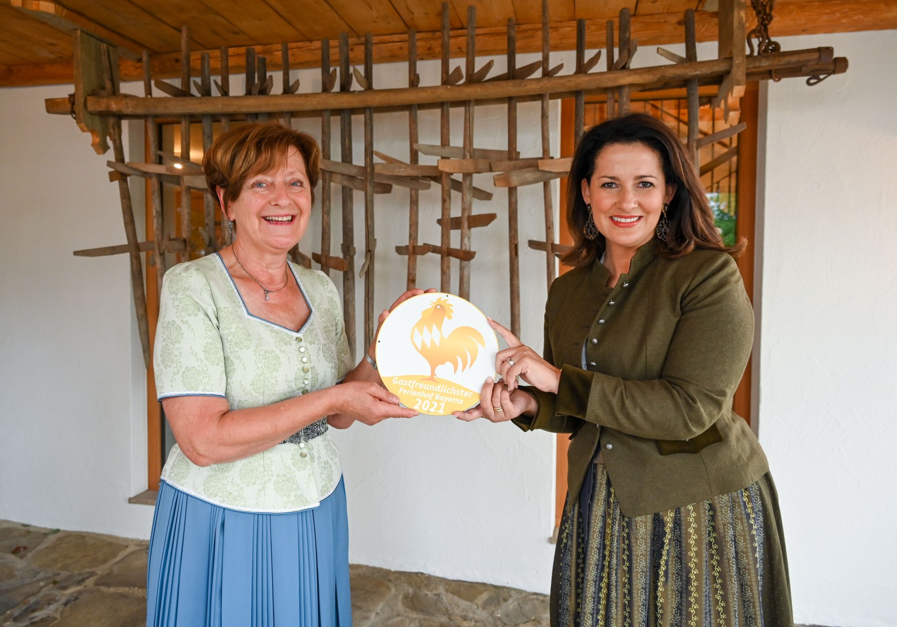Ministerin Michaela Kaniber und der 1. Vorsitzenden des bayerischen Landesverbands Blauer Gockel – Bauernhof- und Landurlaub.