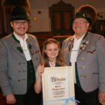 Seit 70 Jahren ist Leonhard Obermaier, der Westner-Hartl von Stetten, Mitglied bei den Wildenwarter Trachtlern. „Für dieses Ereignis haben wir gar kein Ehrenzeichen mehr vorgesehen, also haben wir für den Hartl extra eine Urkunde entworfen“ so Helmut Freund. „Viel Erfahrung sammelte sich in den letzten Jahrzehnten für die Trachtensache und den Wildenwarter Trachtenverein an“, so der Vorsitzende des Wildenwarter Trachtenvereins beim Vereinshoagascht im gut besuchten Saal der Schlosswirtschaft. „viele junge Buam und Dirndl traten damals mit 15, 16 Jahren in den Verein ein und heute darf ich 18 von ihnen das Ehrenzeichen für ihre langjährige Vereinstreue übergeben“. Marianne Kronast, Peter Möderl und Johann Steindlmüller erhielten das goldene Ehrenzeichen des Vereins für 60 Jahre aktive Mitarbeit im Wildenwarter Traditionsverein, Josef Riepertinger bekam das Ehrenzeichen 50 für ein halbes Jahrhundert.