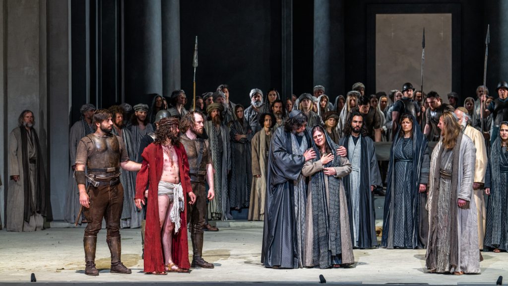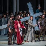 Das die Botschaft des Passionsspiel auch heute noch relevant ist, wird aus den ersten Worten des Jesus-Darsteller auf der Bühne deutlich: “Es herrscht eine Zeit der Angst in Israel. Kriegsgeschrei erfüllt das Land, Armut und Krankheit raffen euch dahin.”