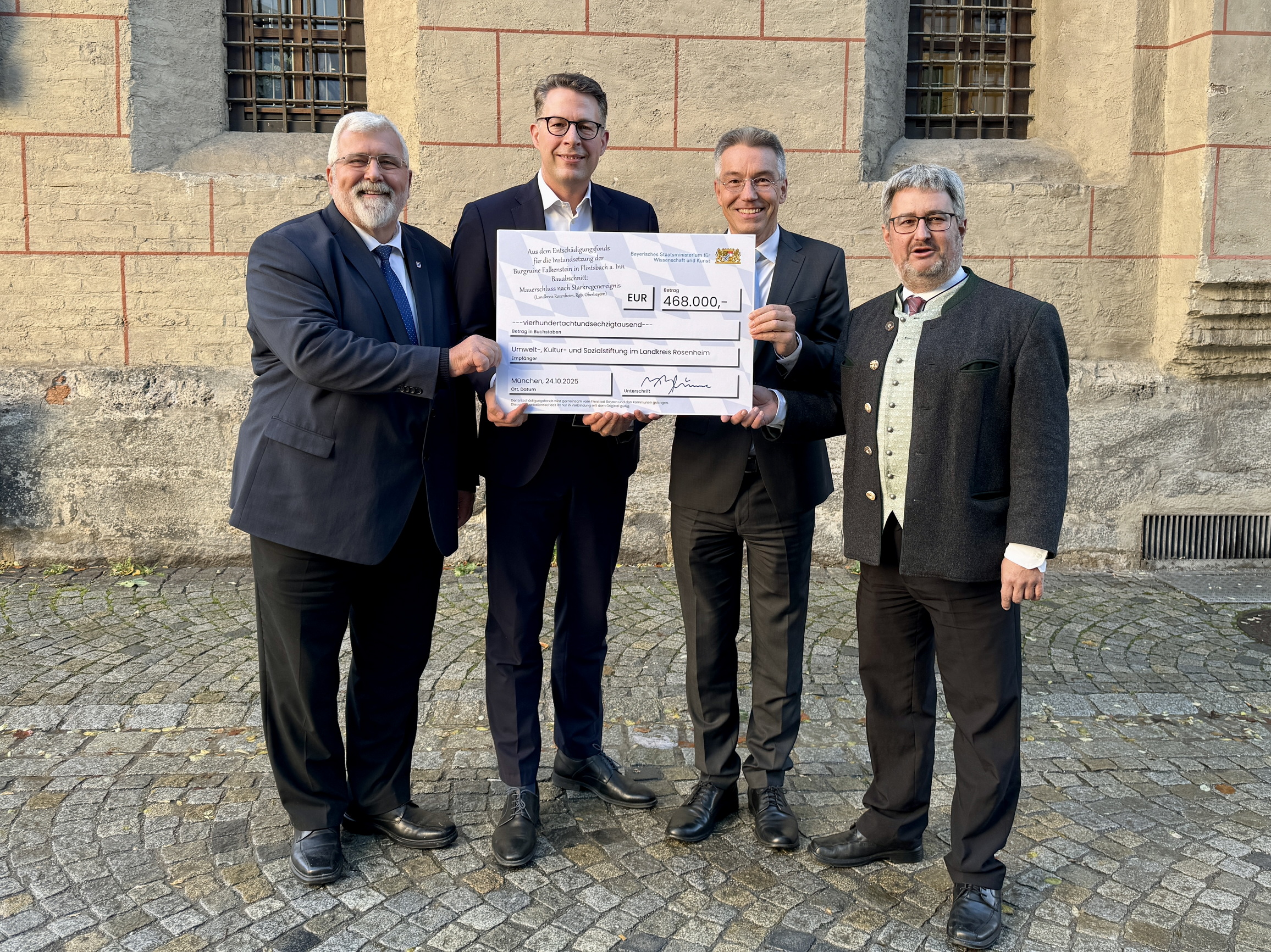 V.l.n.r. Sebastian Friesinger, MdL, Wissenschaftsminister Markus Blume, Landrat Otto Lederer, Erster Bürgermeister Stefan