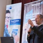 Spannend waren auch die jeweils 90-sekündigen Kurzvorträge, bei denen insgesamt sechs touristische Startup-Unternehmen die Gelegenheit nutzten, sich und ihre Lösungsstrategien und Angebote vorzustellen. Im Anschluss präsentierten Petra Berger von Tegernseer Tal Tourismus und Fabien Grzimek vom Park-Hotel Egerner Höfe ihre konkreten digitalen Konzepte als Best-Practice-Beispiele, ehe die Veranstaltung mit einer Zusammenfassung des Tages durch Frank-Ulrich John, Geschäftsführer Kommunikation DEHOGA Bayern, endete.