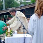 „Wie bringen wir Sport und Gott unter einen Hut? Ganz einfach: Gott ist immer in unserer Mitte“ – nach diesem Predigteinstieg begann Gaiser seine weiteren Ausführungen. Als Vater eines begeisterten Handballspielers warb er dafür, dass der Sport mit seinen Vorbildern, Leistungen und Freuden stets von Gerechtigkeit und Fairness geprägt sein möge. Dass dies nicht so ganz einfach ist, zeigte er beim Vergleich der unterschiedlich großen Bälle der vier Abteilungen des SV Riedering. „Die Bälle vom Tischtennis, die Schneebälle der Skifahrer, der Ball der Fußballer oder gar der Gymnastikball der Gesundheitsabteilung – sie sind kleiner oder größer. Aber im Sport, im Leben und im Glauben zählt nicht, welche Ballgröße man spielt, wer mehr Tore schießt oder wer schneller ist. Vielmehr ist es wichtig, ohne Neid ein lohnenswertes Ziel zu erreichen. In diesem Sinne gratuliere ich dem SV Riedering, dass ihm dieses Ziel in all den Zeiten mit Höhen und Tiefen immer wieder gelungen ist“. Zum Abschluss des festlichen Glaubensbekenntnisses auf dem Sportplatz bedankte sich Tobias Gaiser bei den ehemaligen Oberministeranten Lisa Beier und Elias Kahler für die organisatorische und inhaltliche Vorbereitung der Wortgottesfeier.
