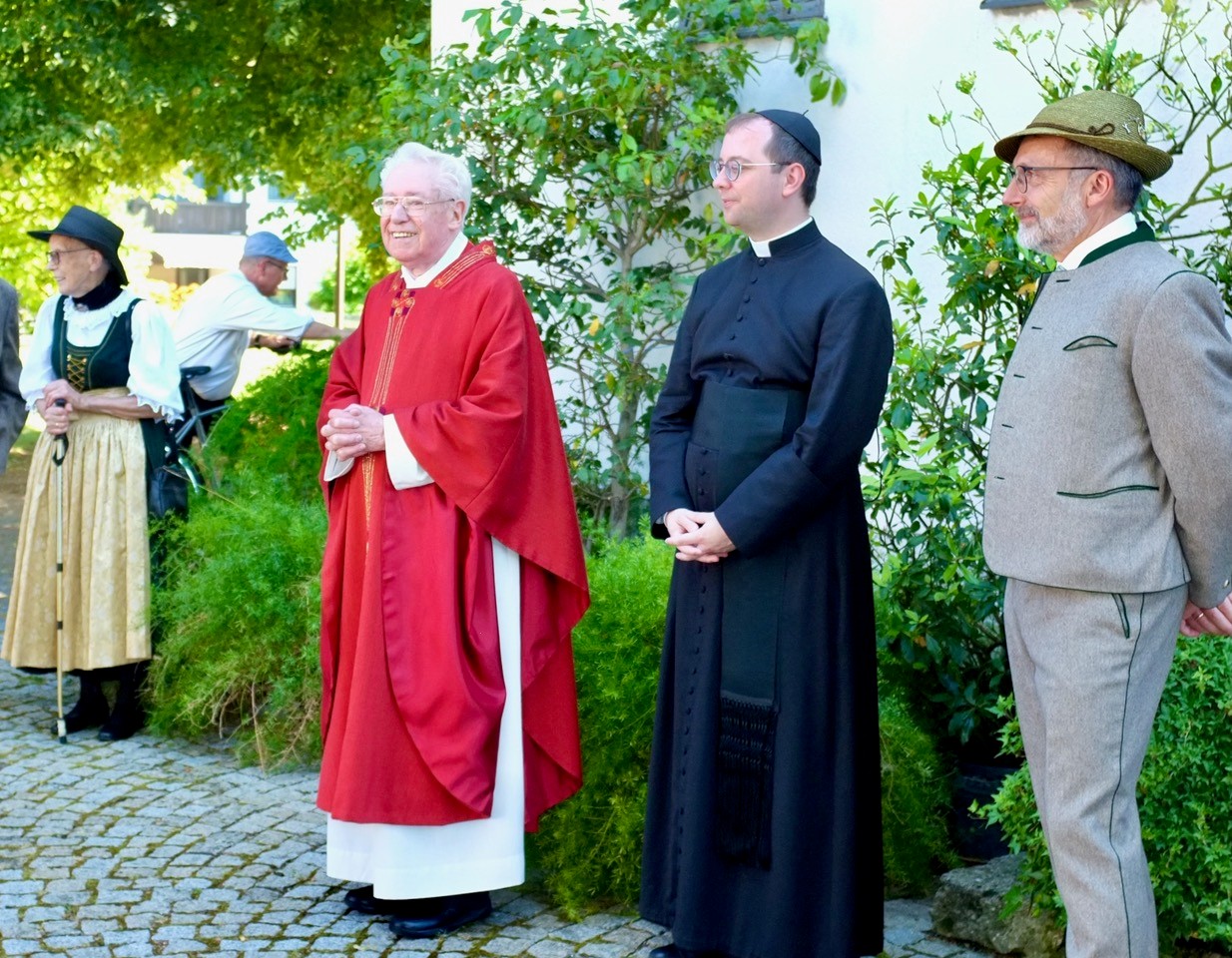 v.links Pfarrer Hartl, Pfarrer Gehringer und Bürgermeister Kalsperger vor der Kirche in Raubling
