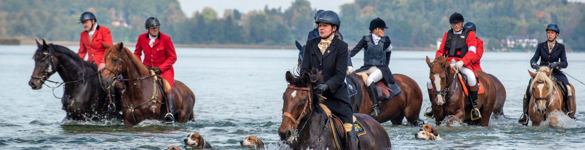 Auf Herrenchiemsee fand die 65. traditionelle Herbstjagd mit 36 Reitern und 40 Hunden statt. Das Geläuf war gut 20 Kilometer lang mit vielen Hindernissen, aufgeteilt in mehreren Schleppen (Etappen). Als die klassischen Hornsignale der Chiemgauer Jagdhornbläser “Bien Aller de Baviere” und ihrer Jungbläsern, den Bayerischen Jungwölfen, „Les Louvarts de Baviere“ riefen, formieren sich alle Reiter um zum großen Stelldichein mit der Hundemeute vor der Kapelle des Alten Schlosses. Dann begann der Aufgalopp. Die “Equipage” mit dem Master und dem Schleppenleger führte die rund 40 schnell und sicher spurenden Foxhounds.