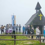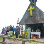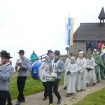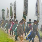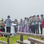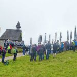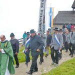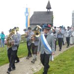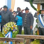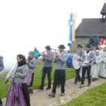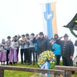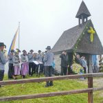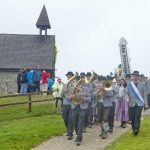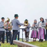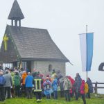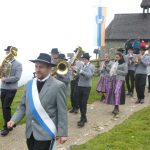 Pfarrer David Mehlich, der mit dem kirchlichen Dienst aus dem Pfarrverband Obing-Pittenhart-Kienberg und mit der Jugendblaskapelle Seeon den Gottesdienst gestaltete, bat in seiner Predigt angesichts des dichten Bergnebels, sich im Leben nicht nur auf das optisch Sichtbare zu konzentrieren. „Optimismus können wir am Kreuz ablesen, denn es ist ein Zeichen der Hoffnung – auch für die Verstorbenen. Die Welt geht nicht den Bach runter, machen wir auch der Jugend Mut, schließlich dürfen 70 Jahre Frieden uns nicht gleichgültig sein“, so der Geistliche, der zum Abschluss des Gottesdienstes auch noch das rechts von der Kapelle stehende Kreuz nach erfolgter Restaurierung segnete. Ehe Reinhard Schreiner als 1. Vorstand der Krieger- und Soldatenkameradschaft Pittenhart zusammen mit Michael Bernauer, Gauvorstand der Vereinigten Krieger- und Soldatenkameradschaften Chiemgau und Rupertigau und mit 1. Obmann Pius Graf von der Interessengemeinschaft der Krieger-, Veteranen- und Soldatenkameradschaften im Landkreis Rosenheim einen Kranz niederlegte, sagte er: „100 Jahre nach dem I. Weltkrieg mit 19 Millionen Toten und nach dem II. Weltkrieg mit gar 60 Millionen Toten müssen wir alle Anstrengungen unternehmen, dass Friedens-Erhaltung keine Selbstverständlichkeit zum Nulltarif ist“. Alsdann wurde zur gemütlichen Einkehr bei inzwischen spürbar gestiegenen Temperaturen zur Steinlingalm marschiert. Ein abschließender Dank für die würdevolle Feier gab es noch für die Aschauer Alphornbläser, für die Gebirgsschützenkompanie Aschau für deren Salutschießen, dem Obst- und Gartenbauverein Pittenhart für die Ausschmückung der Kapelle sowie der Bergwacht, der Feuerwehr Pittenhart, der Gemeinde Aschau und der Kampenwandbahn für all deren Unterstützung und Entgegenkommen.