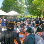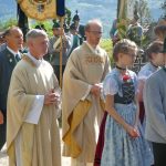 „Das Kreuz ist nicht nur ein religiöses Symbol, sondern vielmehr ist das Kreuz ein Erkennungszeichen für die Christen, ein Erkennungszeichen für das Leben, für die Hoffnung und für das Heil“ – mit diesen Worten bat Pfarrer Klaus Hofstetter als heuriger Prediger bei der inzwischen 67. Wallfahrt der Chiemgauer Trachtler in Raiten (Gemeinde Schleching), dass die Trachtler und die Christen das Kreuz nicht nur tragen, sondern auch nach dem Kreuz leben sollen. Pfarrer Hofstetter vom Pfarrverband Westliches Chiemseeufer feierte den Gottesdienst unter freiem Himmel bei der Kirche „Maria zu den sieben Hügeln“ zusammen mit Pfarrer Martin Strasser vom Pfarrverband Oberes Achental und dem gemeinsamen liturgischen Dienst aus Raiten und vom Trachtenverein Prien. In seinen weiteren Ausführungen sagte Pfarrer Hofstetter: „Auch wenn an Christi Himmelfahrt Jesus Christus in den Himmel aufgefahren ist, so ist er doch bei uns“. Und zum Thema „Kreuz“ erzählte er von einer jüngst gemachten Bittgang-Erfahrung, derzufolge es beim Gang durch den Ort nachdenkliche Stimmen zum Vorantragen des Kreuzes gab, worauf Pfarrer Hofstetter sagte: „Wenn wir das Kreuz nicht mehr öffentlich vorantragen dürften, dann würde etwas nicht mehr stimmen“. Zum Tragen der Tracht sagte bei seinen Grußworten Gauvorstand Miche Huber: „Mit dem Tragen der Tracht spüren wir auf der Haut Verantwortung, diese müssen wir auch übernehmen, wenn wir 70 Jahre nach dem Kriegsende wieder Flucht und Vertreibung als Realität vorfinden. Unsere Trachtenvereine sind ein gutes Beispiel für Integration, lehnen wir uns nicht zurück und pflegen wir auch fortan ein festliches, friedliches und christliches Werte-Verständnis“. Die Willkommensgrüße und Dankesworte des Gauvorstands galten Ehrenvorsitzendem Otto Dufter, den Vertretern der Nachbarsgaue Bayerischer Inngau und Gauverband I, der Musikkapelle Schleching unter der Leitung von Walter Reisenauer, den Schlechinger Sängern, den Schlechinger Alphornbläsern, sowie den Böllerschützen, der BRK, der Feuerwehr und der Polizeidirektion Grassau. Dem Gottesdienst folgte noch ein Gedenken am Gefallenen-Grab sowie eine Einkehr beim neu eröffneten Wirt von Raiten. Ein besonderer Dank galt noch der Raitener Dorfgemeinschaft, die in guter Abstimmung mit der Gemeinde Schleching und mit der Gärtnerei Glanz für eine glanzvolle Vorbereitung der Wallfahrt für die fast 2.000 Trachtlerinnen und Trachtler aus den 23 Trachtenvereinen des Chiemgau-Alpenverbandes gesorgt hatten.