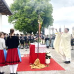 Für Helmut Rosenwink, seit zehn Jahren Wildenwarts Musikvereins-Vorstand war es eine große Freude, dass bei unsicheren Wetterprognosen und schwarzem Gewölk die mitgebrachten Regenschirme nicht aufgespannt werden mussten. So erfreuten sich die vielen Gottesdienstbesucher an einem liebevoll hergerichteten Altar zwischen Schule und Kirche. Für Pfarrer Philipp Werner war es nach seinem Amtsantritt im Pfarrverband Westliches Chiemseeufer die erste Gelegenheit, die Pfarrgemeinde „Christkönig“ und die allesamt versammelten Ortsvereine aus der ehemaligen Gemeinde Wildenwart näher kennenzulernen. „Musik ist gleichsam ein Blick in den Himmel, es ist herrlich, dass Jesus selbst Mensch geworden ist und dass wir auf diese Weise eine Beziehung zu Gott und der gesamten Schöpfung haben“. Ehe der Jubiläumsgottesdienst mit dem Segen und mit der Bayernhymne abgeschlossen wurde galt noch ein großer Dank an die vielen Ehrenamtlichen aus der Pfarrgemeinde und für den Liturgischen Dienst für die Gottesfeier im Freien, deren Kollekte direkt der Seelsorge in der Kuratie „Christkönig“ zugute kommen wird.
