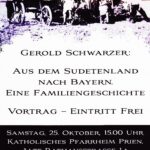 Auf den Tag genau 80 Jahre nachdem das sogenannte Benes-Dekret mit der Nr. 108 am 25. Oktober 1945 verkündet wurde (was die Konfiszierung des gesamten Eigentums aller Sudetendeutschen beinhaltete) und nur wenige Monate nach dem Dekret Nr. 33 (Aberkennung der Staatsbürgerschaft aller Sudetendeutschen in der damaligen Tschechoslowakei) lud die Ortsgruppe Prien der Sudetendeutschen Landsmannschaft in das Priener Pfarrheim zu einem Erinnerungs-Vortrag ein. Referent war der vormalige Studiendirektor des Ludwig-Thoma-Gymnasiums Gerold Schwarzer, der als Kind mit auf der Flucht war und die Geschichte seiner Familie im Buch “Eine sudetendeutsche Familiengeschichte – aus dem Altvatergebirge nach Bayern an den Chiemsee” festgehalten hat.