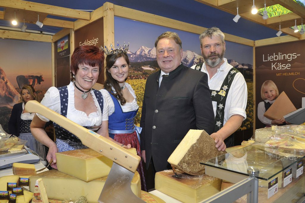 Bayerischer Käse ist nicht nur auf der Grünen Woche ein Renner. Auch im Ausland sind Käsespezialitäten aus Bayern überaus beliebt. 2017 wurde bayerischer Käse im Wert von 1,6 Milliarden Euro in weltweit mehr als 90 Länder verkauft, das ist eine Steigerung um zehn Prozent gegenüber dem Vorjahr. „Unsere bayerischen Käse-Spezialitäten genießen dank bester Rohstoffe, bewährter Rezepturen und sorgfältiger Verarbeitung einen ausgezeichneten Ruf“, sagte Brunner. Das macht sie zum Exportschlager Nummer eins der bayerischen Ernährungswirtschaft. Besonders kräftig fielen die Zuwachsraten in Portugal (plus 84 Prozent), Holland (plus 34 Prozent) sowie Rumänien (plus 27 Prozent) aus. Sehr erfreulich sind dem Minister zufolge auch die starken Zuwächse in China (plus 18 Prozent) und Indien (plus 75 Prozent). „Das zeigt uns, dass unsere Bemühungen, neue Märkte und Absatzmöglichkeiten zu erschließen, erfolgreich sind“, so Brunner. Hauptabnehmer sind aber nach wie vor mit großem Abstand die europäischen Nachbarn. Hier liegt Italien vor Österreich, Frankreich und den Niederlanden.