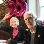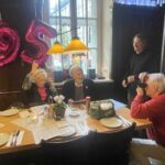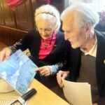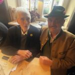 Fotos: Hötzelsperger – Eindrücke von der Feier zum 95. Geburtstag von Karl Stankiewitz – 1. Karl Stankiewitz mit seiner Schwägerin Alwine nach einem Buchgeschenk aus der Kampenwandregion – 2. Karl Stankiewitz zwischen zwei Lampen – 3. Karl Stankiewitz vor seiner Geburtstagsrede mit Schwägerin Alwine