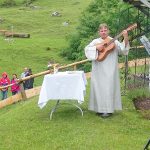 Die Andacht wurde von Johannes Seibold, Diözesanseelsorger der KLB, gestaltet. Musikalisch umrahmt wurde sie von den Lechner Mädels aus Rechtmehring mit ihren Blasinstrumenten und Johannes Seibold selbst mit seiner Gitarre. Thema war der Baum der Religionen – Baum des Friedens. Verschiedene Texte wiesen auf den Dialog des Friedens hin. Nach der Andacht gab es bei der Sennerin Regina Neuwieser noch Kaffee und Kuchen, so dass der Nachmittag gemütlich ausklang. Auch der Regen hatte immer wieder ein Einsehen.