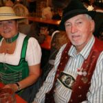 Besuch aus Los Angeles beim großen Heimatabend der drei Aschauer Trachtenvereine im Festzelt zum Aschauer Markt: Hanna-B.R. Habereder, die Vorsitzende der „Gemütlichen Schuhplattler“ aus Anaheim in Kalifornien besuchte zusammen mit Ehemann Professor Johann Lorenz Freiherr Habereder die Aschauer Trachtler, genossen eine Maß Bier und eine Brotzeit und freuten sich an den Darbietungen der Dirndl und Buam auf der Bühne.