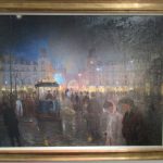 Ingrid Fricke, Vorsitzende des Kulturfördervereins Prien am Chiemsee e,V, begrüßte die Pressevertreter und erläuterte die Intention der Kuratorinnen. Man müsse einfach hin und wieder gesammelte Werke zu bestimmten Themen zeigen, wie eben hier mit der Prinzregentenzeit, einer Blütezeit der Kultur in Bayern. Besonders habe man dabei Schwerpunkte gelegt auf Bilder zu Themen wie z.B. zur Rolle der Frauen, die in dieser Epoche eine ungeahnte Emanzipation erlebten. Entscheidende Impulse gingen hier von Marie Haushofer, der Enkelin des bekannten Chiemseemalers Karl Haushofer, von der Fraueninsel aus, deren Bilder für die künstlerische Freiheit und Entfaltung der Frauen wichtige Anstösse gaben. Ursprünglich hatte Karl Raupp, bekannt wegen seiner Chiemseelandschaften, die Frauenbewegung losgetreten. Beispielhaft dafür steht sein Bild von der zeitungslesenden Frau. Die privaten Malschulen rund um den Chiemsee boten den Künstlerinnen Ausbildungsmöglichkeiten, die ihnen an den Akademien noch versagt waren. In den Blickpunkt rücken wollen Fricke und Gladigau u.a. auch die Situation der Kunstszene in der Metropole München mit seinen Künstlerfesten im Fasching, die während der Prinzregentenzeit ihre Glanzzeit hatten. Auf ein ganz besonderes künstlerisches Zeitdokument aus der Kunststadt München verwies Ingrid Fricke hier auf das Bild vom Stachus, in dem es viel zu entdecken gibt.