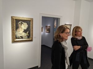 Dann führten die beiden Kuratorinnen durch die Räume in der Galerie und erzählten abwechselnd zu den jeweiligen Bildern hochinteressante Geschichten, z.B. vom Prinzregenten Luitpold, der sehr beliebt war, jedes Jahr im Sommer den Chiemsee besuchte, im Schloss Wildenwart wohnte und als guter Schwimmer gerne im Bayerischen Meer Baden ging und Schifferlfahrten unternahm. Seine Ankunft in Prien und seine öffentlichen Auftritte, waren gefeierte Ereignisse. Sehr interessant auch die Anekdoten über das Aufkommen berühmter Kaffeehäuser als Inbegriff der “Guten alten Zeit” (im Jahre 1888 wurde z.B. das Cafe Luitpold in der Briennerstraße eröffnet, in dem Prinzregent Luitpold 1911 seinen 90.Geburtstag feierte) oder die Informationen über das Gästebuch der Villa Zumbusch in Aiterbach, in das sich auch der Prinzregent eingetragen hat und die Künstlerkolonie auf der Fraueninsel, die weitere Künstler anzog, die sich rund um den Chiemsee niederließen und eine lebendige Künstlerlandschaft mit Künstlerpersönlichkeiten wie Christian Maximilian Baer auf der Fraueninsel, Leo Putz in Hartmannsberg, Julius Exter in Übersee oder Ludwig von Zumbusch in Aiterbach entstehen liess.