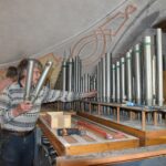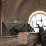 Orgelpfeife um Orgelpfeife, Windwerk (Gebläse, Bälge, Kanäle) und Spieltisch wurden abgebaut und nach unten befördert. Jetzt wird die Statik der Empore geprüft, Maler- und Elektroarbeiten durchgeführt, bis im August die neue Orgel ihren Platz finden wird.
