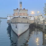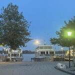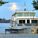Feierabendstimmung herrscht im Priener Hafen der Chiemsee-Schifffahrt gewöhnlich, wenn die Sonne untergegangen und der Mond aufgegangen ist.